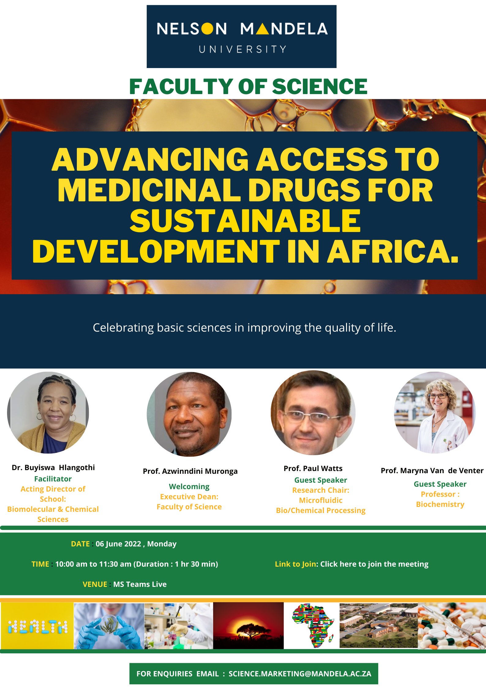 The Nelson Mandela University will be hosting an online conversation on the Advancing Access To Medicinal Drugs For Sustainable Development In Africa.