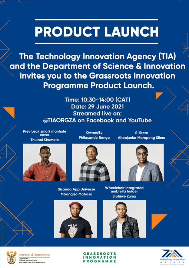 The Technology Innovation Agency together with the Department of Science and Innovation is inviting you to the launch of the Grassroots Innovation Programme Product.
