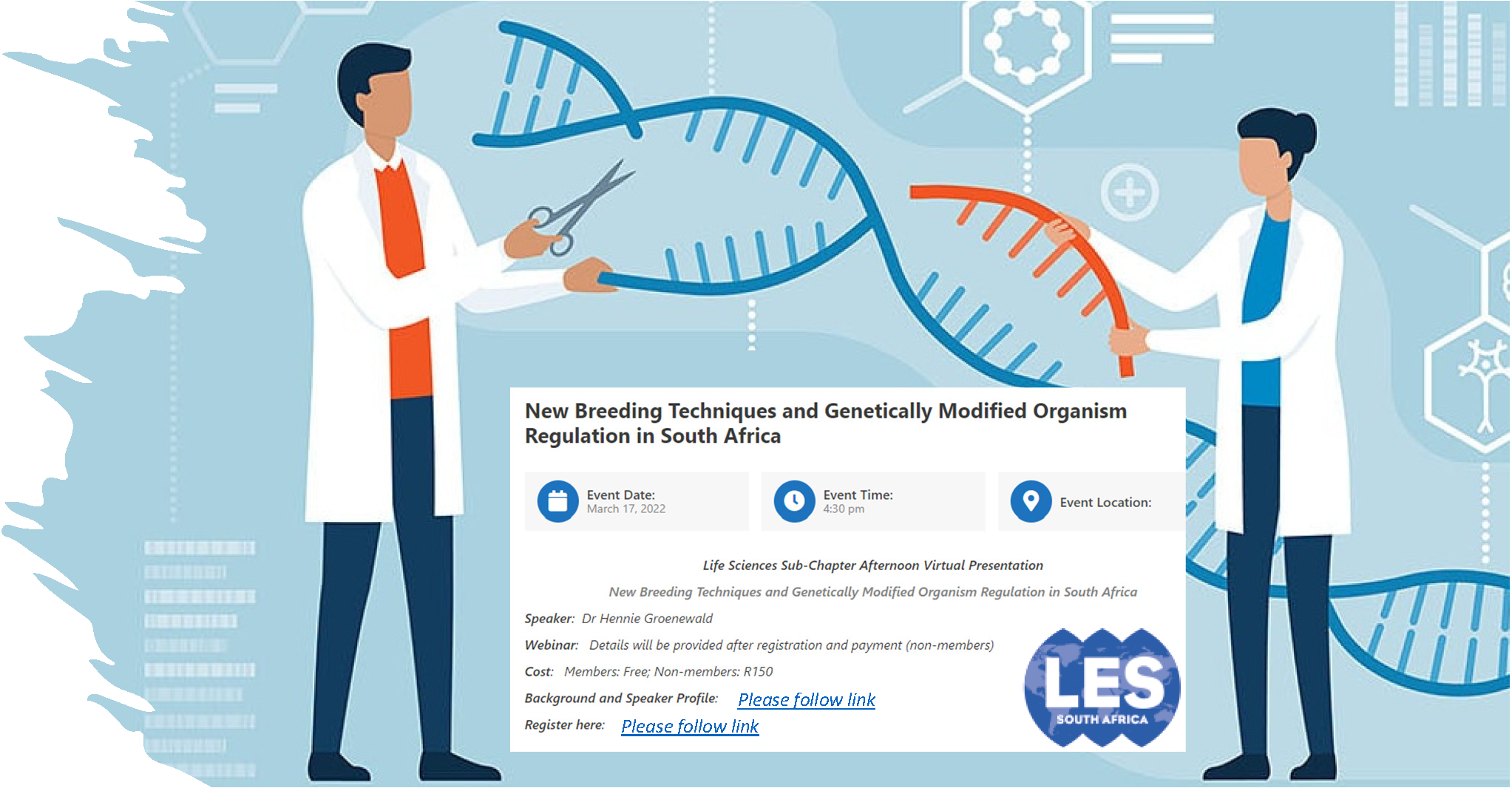 The Licensing Executives Society of South Africa is hosting a virtual presentation on New Breeding Techniques and Genetically Modified Organism Regulation in South Africa. The speaker at the event will be Dr Hennie Groenewald of Biosafety South Africa (speaker profile)