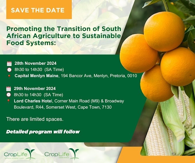 CropLife South Africa and CropLife Africa Middle East are pleased to invite you to join us in an information session to address the current challenges faced by South African agriculture, but more importantly, exploring the opportunities for transitioning towards sustainable food systems while enhancing agricultural productivity and strengthening South Africa's key role in the trade of commodities. In this context, we will analyse the data presented by BFAP to gain insights into the current state and future prospects of agriculture in South Africa, especially in the light of a growing number of green policies.